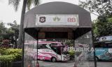 Bus yang membawa atlet dan ofisial cabang olahraga catur kontingen Jawa Barat meninggalkan area Hotel Grand Preanger, Jalan Asia Afrika, Kota Bandung, Selasa (19/10). Sebanyak 170 atlet dan ofisial kontingen Jawa Barat dari berbagai cabang olahraga pada gelombang pertama telah menjalani masa karantina selama lima hari guna memastikan kesehatan atlet dan ofisial serta mengantisipasi penyebaran Covid-19. Foto: Republika/Abdan Syakura (FOTO : REPUBLIKA/ABDAN SYAKURA)
