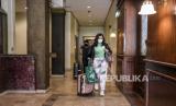 REPUBLIKA.CO.ID, BANDUNG -- Sejumlah atlet dan ofisial cabang olahraga kontingen Jawa Barat usai menjalani karantina di Hotel Grand Preanger, Jalan Asia Afrika, Kota Bandung, Selasa (19/10).