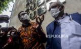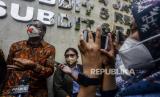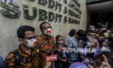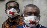 REPUBLIKA.CO.ID,JAKARTA -- Direktur Eksekutif Lokataru Haris Azhar bersama Kuasa Hukum Pieter Ell memberikan keterangan kepada wartawan usai memenuhi undangan mediasi di Mapolda Metro Jaya, Jakarta, Kamis (21/10).