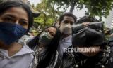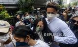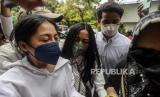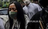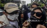 Selebgram Rachel Vennya (kedua kiri) bersiap menjalani pemeriksaan di Mapolda Metro Jaya, Jakarta, Kamis (21/10). Rachel Vennya diperiksa oleh kepolisian terkait kasus dugaan pelanggaran ketentuan karantina saat menjalani isolasi di Rumah Sakit Darurat Covid-19 Wisma Atlet Pademangan. Republika/Putra M. Akbar (FOTO : Republika/Putra M. Akbar)