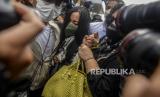 Selebgram Rachel Vennya (tengah) bersiap menjalani pemeriksaan di Mapolda Metro Jaya, Jakarta, Kamis (21/10). Rachel Vennya diperiksa oleh kepolisian terkait kasus dugaan pelanggaran ketentuan karantina saat menjalani isolasi di Rumah Sakit Darurat Covid-19 Wisma Atlet Pademangan. Republika/Putra M. Akbar (FOTO : Republika/Putra M. Akbar)