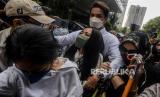 Selebgram Rachel Vennya bersiap menjalani pemeriksaan di Mapolda Metro Jaya, Jakarta, Kamis (21/10). Rachel Vennya diperiksa oleh kepolisian terkait kasus dugaan pelanggaran ketentuan karantina saat menjalani isolasi di Rumah Sakit Darurat Covid-19 Wisma Atlet Pademangan (FOTO : Republika/Putra M. Akbar)