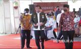 Presiden Joko Widodo didampingi Gubernur Kalimantan Selatan Sahbirin Noor melakukan serangkaian kegiatan seperti peresmian pabrik biodiesel level B30 di Kabupaten Tanah Bumbu, meninjau pelaksanaan vaksinasi COVID-19 di RS Anshari Saleh dan peresmian Jembatan Sungai Alalak di Banjarmasin. (FOTO : Pemprov Kalsel)