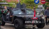 Presiden Joko Widodo menaiki mobil rantis saat menuju Jembatan Sungai Alalak, Banjarmasin, Kalimantan Selatan, Kamis (21/10/2021). Dalam kunjungan kerja di Kalimantan Selatan, Presiden Joko Widodo melakukan serangkaian kegiatan seperti peresmian pabrik biodiesel level B30 di Kabupaten Tanah Bumbu, meninjau pelaksanaan vaksinasi COVID-19 di RS Anshari Saleh dan peresmian Jembatan Sungai Alalak di Banjarmasin. (FOTO : Antara/Bayu Pratama S)