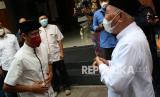 Menteri Pendidikan, Kebudayaan, Riset dan Teknologi Nadiem Makarim (kiri) disambut pengasuh Pondok Pesantren Tebuireng KH Abdul Hakim Mahfudz atau Gus Kikin (kanan) sebelum ziarah ke makam Presiden ke-4 RI KH Abdurrahman Wahid atau Gus Dur serta pendiri NU KH Hasyim Asy (FOTO : Antara/Syaiful Arif)