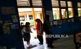 REPUBLIKA.CO.ID, YOGYAKARTA -- Siswa mengikuti tes Swab antigen di SD Negeri Samirono, Yogyakarta, Kamis (21/10). Tes Swab antigen untuk guru dan murid ini untuk mengetahui kesehatan siswa dan guru saat uji coba pembelajaran tatap muka (PTM). Tes ini diadakan acak di beberapa sekolah di Yogyakarta.