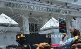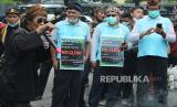 Puluhan massa dari Aliansi Komunitas Budaya dan Ormas Jawa Barat menggelar unjuk rasa Selamatkan Kebun Raya Bogor (KRB), di depan DPRD Jawa Barat, Jalan Diponegoro, Kota Bandung, Kamis (21/10). Aksi tersebut menolak adanya wisata malam dengan menggunakan cahaya lampu atau glow di KRB, serta menuntut kepada pemerintah daerah untuk mengembalikan marwah KRB dan fungsi KRB sebagai tempat konservasi, cagar budaya, rekreasi edukasi dan sejarah. (FOTO : Edi Yusuf/Republika)