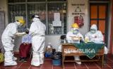 Petugas kesehatan mendata pelajar saat kegiatan tes usap PCR secara acak di SDN 025 Cikutra, Jalan Cikutra, Kota Bandung, Jumat (22/10). Berdasarkan data dari Dinas Kesehatan Kota Bandung hingga Kamis (21/10), tercatat sebanyak 54 pelajar dan guru dari berbagai sekolah dinyatakan positif Covid-19 hasil tes usap PCR secara acak yang digelar dari 15 Oktober. Foto: Republika/Abdan Syakura (FOTO : REPUBLIKA/ABDAN SYAKURA)