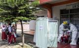 REPUBLIKA.CO.ID,BANDUNG -- Pelajar menjalani tes usap PCR di SDN 025 Cikutra, Jalan Cikutra, Kota Bandung, Jumat (22/10).
