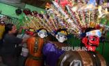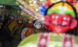 REPUBLIKA.CO.ID, JAKARTA -- Rijal merapikan kerajinan ondel-ondel ukuran anak-anak yang ia jual di Pasar Minggu, Jakarta, Jumat (22/10/2021). Menteri Keuangan Sri Mulyani Indrawati menyebutkan anggaran pemulihan ekonomi nasional (PEN) telah terealisasi sebesar Rp428,21 triliun atau 57,5 persen dari pagu Rp744,77 triliun per 15 Oktober 2021.