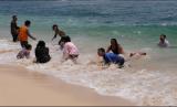REPUBLIKA.CO.ID,YOGYAKARTA -- Wisatawan bermain di Pantai Sadranan Dusun Pulegundes, Sidoarjo, Tepus, Gunung Kidul, DI Yogyakarta, Ahad (24/10/2021).