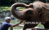 Wisatawan domestik memberi makan gajah saat mengunjungi Bali Zoo, Gianyar, Bali, Ahad (24/10/2021). Kunjungan wisatawan ke kebun binatang tersebut terus meningkat dengan rata-rata kunjungan sekitar 1.000 orang wisatawan per hari saat libur akhir pekan, setelah sebelumnya sempat ditutup pada bulan Juli 2021 hingga pertengahan bulan September lalu sebagai upaya menekan penyebaran COVID-19.  (FOTO : Antara/Fikri Yusuf)