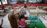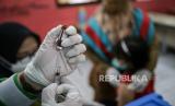 REPUBLIKA.CO.ID, TANGERANG -- Seorang tenaga kesehatan menyiapkan vaksin measles rubella sebelum disuntikkan kepada siswa sekolah dasar kelas 1 saat Bulan Imunisasi Anak Sekolah (BIAS) di SDN Pasar Baru 1, Kota Tangerang, Banten, Senin (25/10/2021). Kegiatan imunisasi tersebut untuk memutus transmisi virus campak dan rubella serta menurunkan angka kejadian Congenital Rubella Syndrome (CSR).