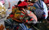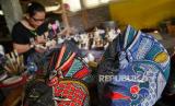 Pesanan cendera mata topeng dari kayu di Sanggar Diponegoro, Bantul, Yogyakarta, Senin (25/10). Dibukanya sektor pariwisata saat PPKM level 3 membawa berkah bagi pembuat sovenir dan cenderamata. Pesanan cenderamata dari Yogyakarta, Solo, dan Bali mulai datang kembali. Cenderamata dijual mulai Rp 12 ribuan tergantung dari bahan dan modelnya. (FOTO : Wihdan Hidayat / Republika)