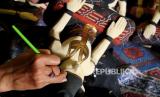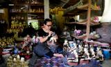 REPUBLIKA.CO.ID, YOGYAKARTA -- Pengerajin melukis pesanan cendera mata patung dari kayu di Sanggar Diponegoro, Bantul, Yogyakarta, Senin (25/10).