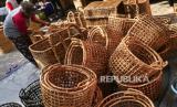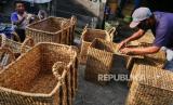 Pekerja merapikan kerajinan Enceng gondok di Srandakan, Bantul, Yogyakarta, Senin (25/10). Kerajinan dari enceng gondok ini untuk memenuhi pasar Eropa dan Amerika. Di sini hanya tempat finishing kerajinan enceng gondok sebelum diekspor. Pesanan mulai meningkat kembali setelah turun pada awal pandemi Covid-19 lalu. (FOTO : Wihdan Hidayat / Republika)