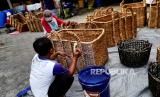 Pekerja melakukan finishing kerajinan enceng gondok di Srandakan, Bantul, Yogyakarta, Senin (25/10). Kerajinan dari enceng gondok ini untuk memenuhi pasar Eropa dan Amerika. Di sini hanya tempat finishing kerajinan enceng gondok sebelum diekspor. Pesanan mulai meningkat kembali setelah turun pada awal pandemi Covid-19 lalu. (FOTO : Wihdan Hidayat / Republika)