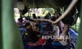 REPUBLIKA.CO.ID,AMBARAWA -- Warga yang masih trauma akibat gempa bumi berada di dalam tenda posko pengungsian sementara yang didirikan TNI-Polri di Kelurahan Pojoksari, Ambarawa, Kabupaten Semarang, Jawa Tengah, Senin (25/10/2021).