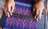 Peserta berlatih membuat tas berbahan baku kain tenun ikat khas Kediri di Kampung Tenun Ikat, Kelurahan Bandar Kidul, Kota Kediri, Jawa Timur, Selasa (26/10/2021). Pelatihan yang diselenggarakan Bank Indonesia bekerja sama dengan pemerintah daerah setempat tersebut diikuti sejumlah penjahit dan perajin kain tenun ikat sebagai upaya mengembangkan kampung wisata edukasi tenun ikat Bandar Kidul. (FOTO : ANTARA/Prasetia Fauzani)