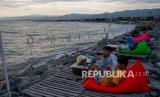 Sejumlah pengunjung menikmati suasana sore di kafe terbuka kawasan wisata Pantai Talise, Palu, Sulawesi Tengah, Jumat (22/10/2021). Kafe-kafe terbuka di sepanjang kawasan pantai itu beroperasi kembali setelah pemerintah setempat melakukan penyesuaian ketentuan pemanfaatan ruang publik dengan penurunan signifikan kasus COIVD-19 di wilayah itu. (FOTO : Antara/Basri Marzuki)