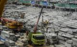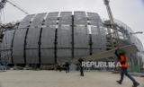 REPUBLIKA.CO.ID,JAKARTA -- Pekerja saat beraktivitas di area pembangunan Jakarta International Stadium (JIS) di kawasan Papanggo, Jakarta, Selasa (26/10).