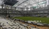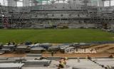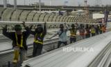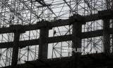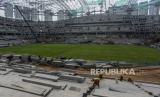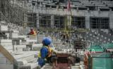 Pekerja saat menyelesaikan pembangunan Jakarta International Stadium (JIS) di kawasan Papanggo, Jakarta, Selasa (26/10). PT Jakarta Propertindo (Jakpro) mencatat pembangunan JIS yang berkapasitas 82.000 penonton itu telah mencapai 76,52 persen dan ditargetkan diresmikan pada Maret 2022 mendatang. Republika/Putra M. Akbar (FOTO : Republika/Putra M. Akbar)