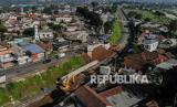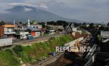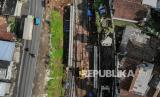 REPUBLIKA.CO.ID, SUKABUMI -- Foto udara proyek rel kereta ganda di Cigombong, Kabupaten Sukabumi, Jawa Barat, Rabu (27/10/2021). Kementerian Perhubungan menyatakan, progres secara keseluruhan pembangunan jalur rel ganda Sukabumi-Bogor segmen Stasiun Paledang - Stasiun Cicurug telah mencapai 90,47 persen serta ditargetkan dapat rampung pada 2022 mendatang.