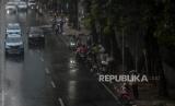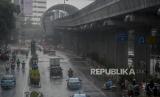 Sejumlah kendaraan menerjang hujan di kawasan Kuningan, Jakarta, Rabu (27/10). Badan Meteorologi, Klimatologi dan Geofisika (BMKG) menyampaikan peringatan dini waspada fenomena La Nina menjelang akhir tahun 2021 yang menyebabkan peningkatan curah hujan. (FOTO : Republika/Putra M. Akbar)