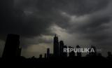 Suasana gedung bertingkat yang diselimuti awan gelap terlihat dari kawasan Kuningan, Jakarta, Rabu (27/10). Badan Meteorologi, Klimatologi dan Geofisika (BMKG) menyampaikan peringatan dini waspada fenomena La Nina menjelang akhir tahun 2021 yang menyebabkan peningkatan curah hujan. (FOTO : Republika/Putra M. Akbar)