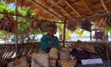 Mama Papua menunjukkan sejumlah kerajinan tangan di Kampung Arborek, Kabupaten Raja Ampat, Papua Barat, Rabu (27/10/2021). Kampung Arborek menjadi satu-satunya desa wisata di Papua Barat yang lolos nominasi 50 besar Anugerah Desa Wisata Indonesia (ADWI) tahun 2021 menyisihkan 1.831 desa wisata seluruh Indonesia yang mendaftar dalam ADWI 2021 program Kementerian Pariwisata dan Ekonomi Kreatif. (FOTO : ANTARA/Olha Mulalinda)