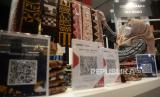 Chief Marketing Officer LinkAja Wibawa Prasetyawan (kiri) dan Direktur Departemen Ekonomi dan Keuangan Syariah Bank Indonesia Ita Rulina (kanan) melihat sejumlah kode batang QRIS saat berlangsungnya Indonesia Sharia Economic Festival (ISEF) ke-8 Tahun 2021 di Jakarta Convention Center (JCC), Senayan, Jakarta, Rabu (27/10/2021). ISEF ke-8 Tahun 2021 bertemakan (FOTO : ANTARA/M Risyal Hidayat)