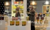 Pengunjung memilih produk yang dipamerkan pada acara Indonesia Sharia Economic Festival (ISEF) 2021, Jakarta, Rabu (27/10). Layanan Syariah LinkAja turut berkontribusi dalam event ekonomi dan keuangan syariah terbesar di Indonesia yakni ISEF 2021 sebagai satu-satunya penyedia QRIS serta uang layanan elektronik pada acara exhibition offline.Prayogi/Republika. (FOTO : Prayogi/Republika.)