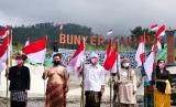 Anggota Brimob bersama mahasiswa dari Aliansi Mahasiswa Nusantara menggunakan baju adat mengikuti upacara Hari Sumpah Pemuda di Bungker Kali Adem, Cangkringan, Sleman, Yogyakarta, Kamis (28/10). Sebanyak 28 mahasiswa dengan baju adat dan anggota Brimob Gondowulung mengadakan upacara menyambut Hari Sumpah Pemuda. Pada tahun ini mengangkat tema dengan semangat sumpah pemuda, menjunjung tinggi sportifitas diri masa pandemi. Upacara peringatan ini bisa dilakukan saat pandemi Covid-19 dengan menggunakan protokol kesehatan Covid-19 ketat. (FOTO : Wihdan Hidayat / Republika)