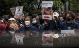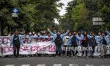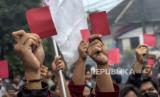 Sejumlah mahasiswa dari berbagai universitas berunjuk rasa di depan Gedung DPRD Provinsi Jawa Barat, Jalan Diponegoro, Kota Bandung, Kamis (28/10). Dalam unjuk rasa yang bertepatan dengan peringatan Hari Sumpah Pemuda tersebut, mereka mengkritik serta mengevaluasi dua tahun pemerintahan Presiden Joko Widodo, diantaranya isu permasalahan Hak Asasi Manusia (HAM), korupsi, krisis demokrasi, kerusakan lingkungan, krisis pendidikan, krisis ekonomi dan kesehatan. Foto: Republika/Abdan Syakura (FOTO : REPUBLIKA/ABDAN SYAKURA)
