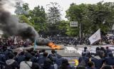 REPUBLIKA.CO.ID,BANDUNG -- Ratusan mahasiswa dari berbagai universitas membentangkan poster saat berunjuk rasa di depan Gedung DPRD Provinsi Jawa Barat, Jalan Diponegoro, Kota Bandung, Kamis (28/10).