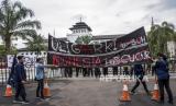 Sejumlah mahasiswa dari berbagai universitas membentangkan spanduk saat berunjuk rasa di depan Gedung Sate, Jalan Diponegoro, Kota Bandung, Kamis (28/10). Dalam unjuk rasa yang bertepatan dengan peringatan Hari Sumpah Pemuda tersebut, mereka mengkritik serta mengevaluasi dua tahun pemerintahan Presiden Joko Widodo, diantaranya isu permasalahan Hak Asasi Manusia (HAM), korupsi, krisis demokrasi, kerusakan lingkungan, krisis pendidikan, krisis ekonomi dan kesehatan. Foto: Republika/Abdan Syakura (FOTO : REPUBLIKA/ABDAN SYAKURA)
