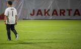 Gubernur DKI Jakarta Anies Baswedan berjalan saat akan melawan tim DPRD DKI Jakarta saat uji coba lapangan latih di Jakarta International Stadium, (JIS) di Tanjung Priok, Jakarta Utara, Kamis (28/10/2021). Pertandingan persahabatan yang digelar PT Jakarta Propertindo (Jakpro) Perseroda tersebut adalah bagian langkah pembuktian bahwa dua lapangan latih JIS yang berstandar internasional kini sudah bisa dimanfaatkan untuk berbagai kegiatan masyarakat. (FOTO : ANTARA/M Risyal Hidayat)