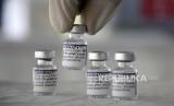 REPUBLIKA.CO.ID, BANDUNG -- Vaksinator mengambil botol kosong vaksin Covid-19 jenis Pfizer saat Gebyar Vaksinasi Covid-19 MUI dan Baznas di Masjid Pusdai, Kota Bandung, Jumat (29/10).