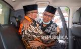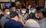 REPUBLIKA.CO.ID,PALEMBANG -- Terdakwa kasus suap sejumlah proyek di Kabupaten Muara Enim yang merupakan Bupati Kabupaten Muara Enim nonaktif Juarsah (tengah) berjabat tangan dengan keluarganya usai menjalani sidang pembacaan putusan di Pengadilan Tipikor Palembang, Sumatera Selatan, Jumat (29/9/2021). Majelis Hakim menjatuhi hukuman kepada Juarsah selama empat tahun enam bulan penjara denda Rp200 juta subsider enam bulan kurungan penjara. ANTARA FOTO/Nova Wahyudi