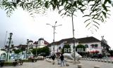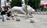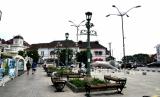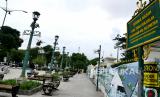 REPUBLIKA.CO.ID, YOGYAKARTA -- Wisatawan berfoto di kawasan Titik Nol Yogyakarta, Jumat (21/9). Titik Nol Yogyakarta dilepas. Melandainya kasus Covid-19 dan status Yogyakarta menjadi level 2 menjadi pertimbangan pencabutan pagar di spot wisata ini. Biasanya wisatawan akan berkumpul di Titik Nol mulai sore hingga malam sebelum pulang.