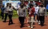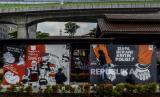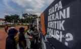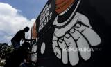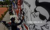 REPUBLIKA.CO.ID, JAKARTA -- Polisi mengikuti pembuatan mural bersama seniman pada kegiatan Bhayangkara Mural Festival di Lapangan Bhayangkara, Jakarta, Sabtu (30/10). Kegiatan lomba mural tersebut diselenggarakan untuk memberikan ruang kebebasan berekspresi bagi seniman dalam menuangkan kreatifitas dan menyampaikan kritik terhadap institusi kepolisian.