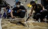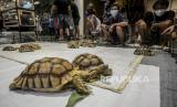 Pengunjung melihat kura-kura pada pameran Exotique Pet Expo di Senayan Park, Jakarta, Sabtu (30/10). Acara yang menampilkan berbagai jenis hewan eksotis itu bertujuan untuk mengenalkan dan mengedukasi masyarakat mengenai keberagaman hewan serta kiat-kiat perawatannya yang diselenggarakan hingga Ahad (31/10). (FOTO : Republika/Putra M. Akbar)