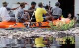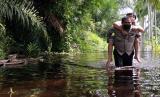 REPUBLIKA.CO.ID, DUMAI -- Anggota polisi menggendong seorang bocah yang terjebak banjir di Kelurahan Bukit Datuk Dumai, Riau, Sabtu (30/10/2021). Otoritas keamanan dan badan penanggulangan bencana di daerah tersebut mengevakuasi ratusan pengungsi dari 3.095 korban terdampak banjir di Kecamatan Dumai Selatan ke tenda-tenda darurat. ANTARA