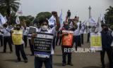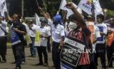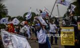 REPUBLIKA.CO.ID,JAKARTA -- Puluhan massa menggelar aksi demonstrasi di Jakarta, Senin (1/11).