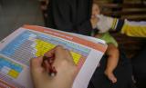 Petugas kesehatan mengisi buku catatan imunisasi anak saat imunisasi balita secara pintu ke pintu di Nambo Jaya, Karawaci, Kota Tangerang, Banten, Senin (1/11/2021). Kegiatan imunisasi jemput bola tersebut dilakukan sebagai respon puskesmas setempat akibat banyak orang tua yang tidak mau membawa bayinya ke fasilitas layanan kesehatan karena takut terpapar COVID-19. (FOTO : ANTARA/FAUZAN)