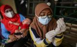 REPUBLIKA.CO.ID, KARAWACI -- Petugas kesehatan menyiapkan vaksin sebelum disuntikkan kepada seorang balita yang dilakukan secara pintu ke pintu di Nambo Jaya, Karawaci, Kota Tangerang, Banten, Senin (1/11/2021). Kegiatan imunisasi jemput bola tersebut dilakukan sebagai respon puskesmas setempat akibat banyak orang tua yang tidak mau membawa bayinya ke fasilitas layanan kesehatan karena takut terpapar COVID-19.