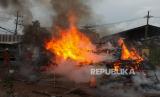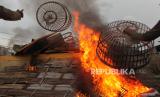 REPUBLIKA.CO.ID, SURABAYA -- Petugas membakar kandang burung merpati aduan usai dibongkar di kawasan Karang Asem, Surabaya, Jawa Timur, Senin (1/11/2021). Pembongkaran kandang burung merpati aduan yang dilakukan petugas gabungan tersebut dilakukan karena tempat itu diduga dijadikan ajang perjudian balap burung Merpati.