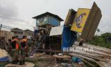 Petugas membongkar kandang burung merpati aduan di kawasan Karang Asem, Surabaya, Jawa Timur, Senin (1/11/2021). Pembongkaran kandang burung merpati aduan yang dilakukan petugas gabungan tersebut dilakukan karena tempat itu diduga dijadikan ajang perjudian balap burung Merpati. (FOTO : ANTARA/Didik Suhartono/aww.)