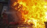 Petugas Bakar Kandang Burung Merpati Aduan di Karang Asem