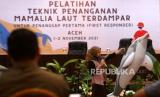 REPUBLIKA.CO.ID, BANDA ACEH -- Asosiasi Indonesia Aquatic Megafauna - Flying Vet (I AM Flaying Vet) Indonesia memberikan pelatihan teknik penanganan mamalia laut yang terjerat jaring dan terdampar di Banda Aceh, Aceh, Senin (1/11/2021).